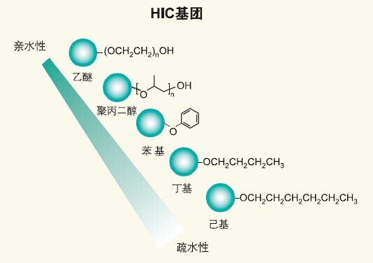 疏水相互作用層析(HIC)是純化生物分子工藝中一個功能強大的工具。該技術利用蛋白表面疏水區域和固定相弱疏水性基團之間的相互作用進行層析分離。HIC是離子交換和尺寸排阻層析法的很好的補充,尤其是樣品中存在蛋白異構體,或目標樣品與雜質的等電點或分子量相似而難以分離時使用。在親和填料不易分辨識別位點相似的蛋白時,HIC通過選擇性的差異可以在親和層析之后使用。