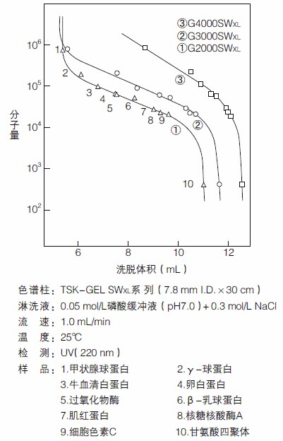 1. TSKgel SW-型填料由含二醇基官能團(tuán)的剛性球形硅膠顆粒組成。