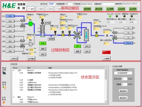 QuikSep Prep全自動層析系統軟件符合新版GMP規范,采用圖形化界面、全自動操作,簡明扼要,任何操作及狀態均可實時顯示在主界面狀態欄中,自動化程度高。結合了大量的容錯性設計,貼合生產實際,降低了對操作人員的技能要求。參考圖: