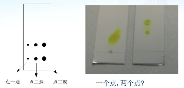 1.?????? 點樣量太大。展開劑不能全部負(fù)載。